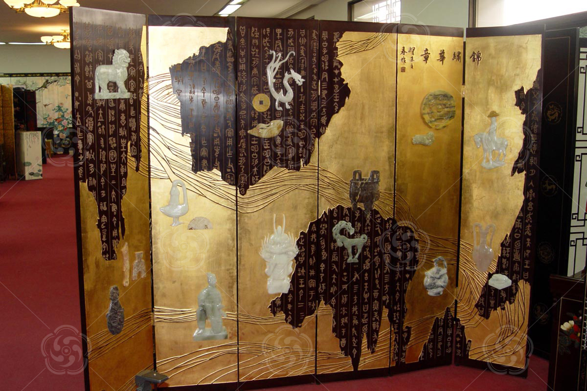 骨石刻漆《錦繡華章》博古無邊屏風